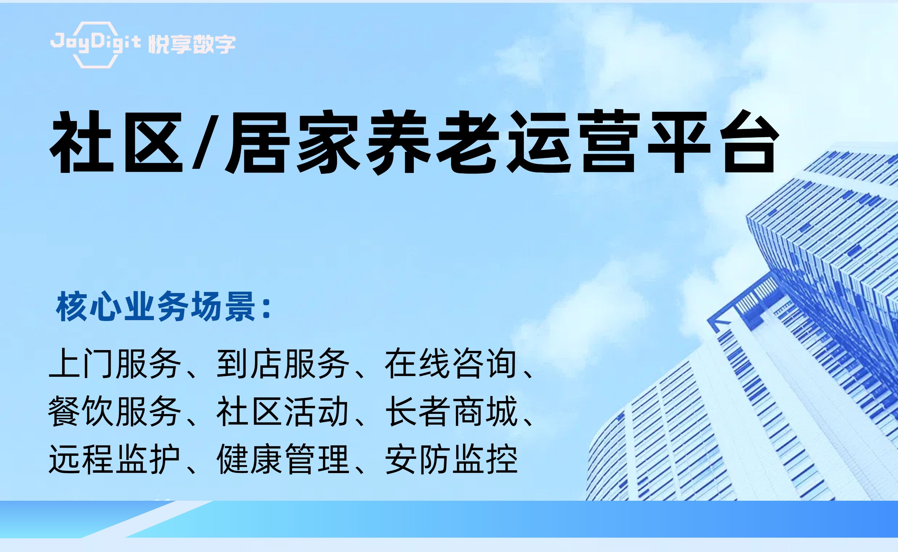 北京悅享數(shù)字科技有限公司(JoyDigit?,簡稱悅享數(shù)字?)作為養(yǎng)老行業(yè)數(shù)字化轉(zhuǎn)型的引領者,以“數(shù)字驅(qū)動健康?,智慧賦能養(yǎng)老?”為愿景,以iSpeed作為養(yǎng)老行業(yè)數(shù)字化轉(zhuǎn)型的標準,通過融合大數(shù)據(jù)、人工智能、物聯(lián)網(wǎng)、區(qū)塊鏈和移動互聯(lián)等創(chuàng)新技術(shù),打造了領先的數(shù)字化養(yǎng)老解決方案-悅享養(yǎng)老數(shù)字化平臺(JoyDigit NexSight Platform),端到端覆蓋了數(shù)字化渠道與銷售、業(yè)務流程標準化與智...